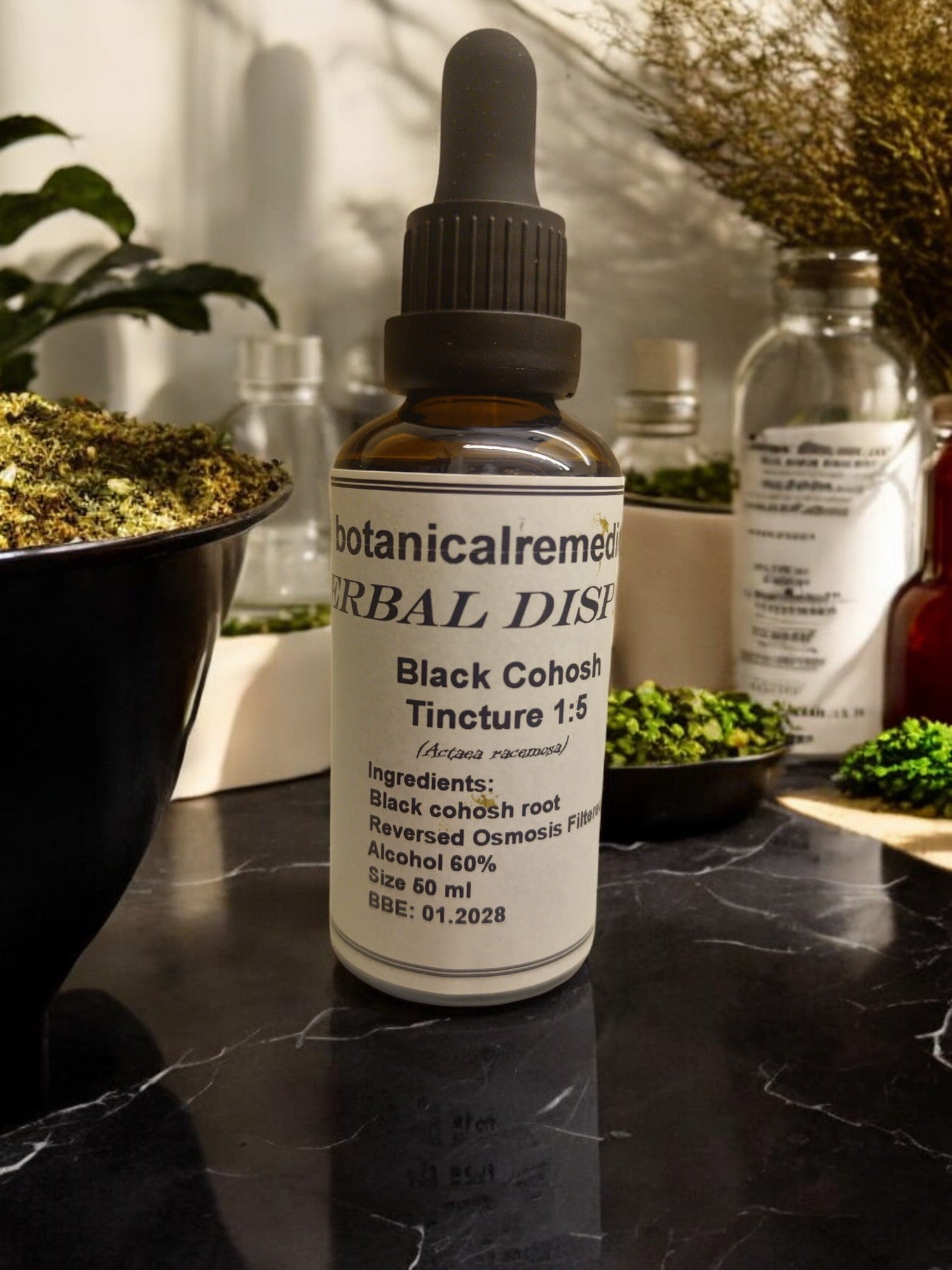 Black Cohosh root Tincture, 1:5 ratio, 60% alcohol,