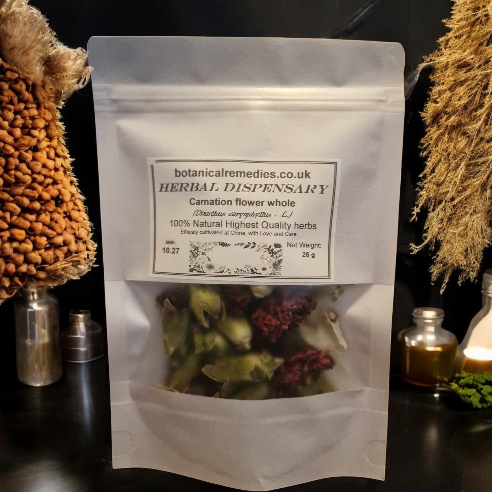 Typical Ingredients: 100% pure Botanical, absolutely nothing added, dried whole Carnation flower.
