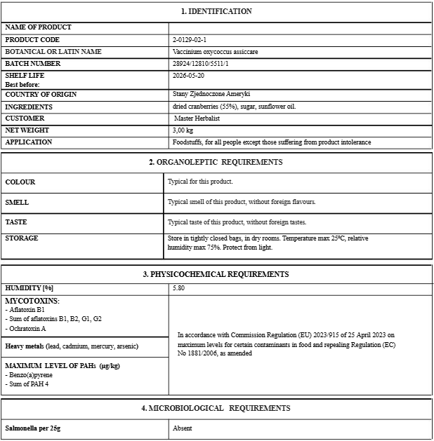 Cranberries whole dried (Vaccinium oxycoccos - L.) Lab-proven Quality and Purity
