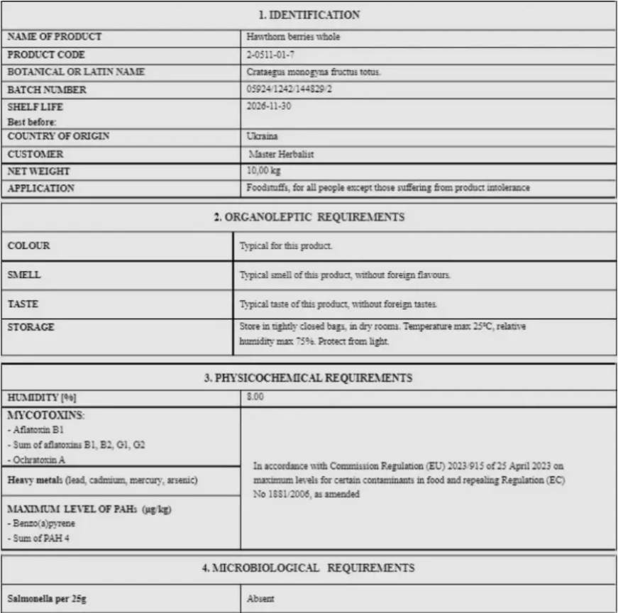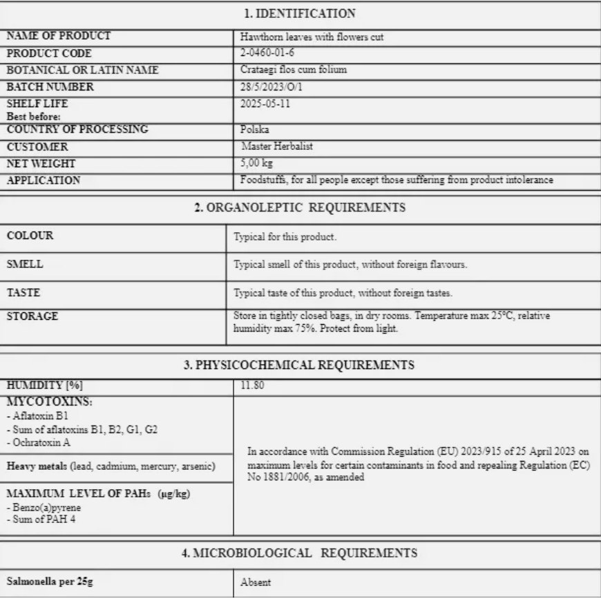 What make our hawthorn berry, leaf and flower powdered tea special? Preparation, using only finest wild grown at wilderness of Poland and Ukraine berries, Leaf's and flowers gathered right time, properly dried then passed trough laboratory checks to confirm highest quality and purity. Provided by wholesaler who comply with GMP standards.