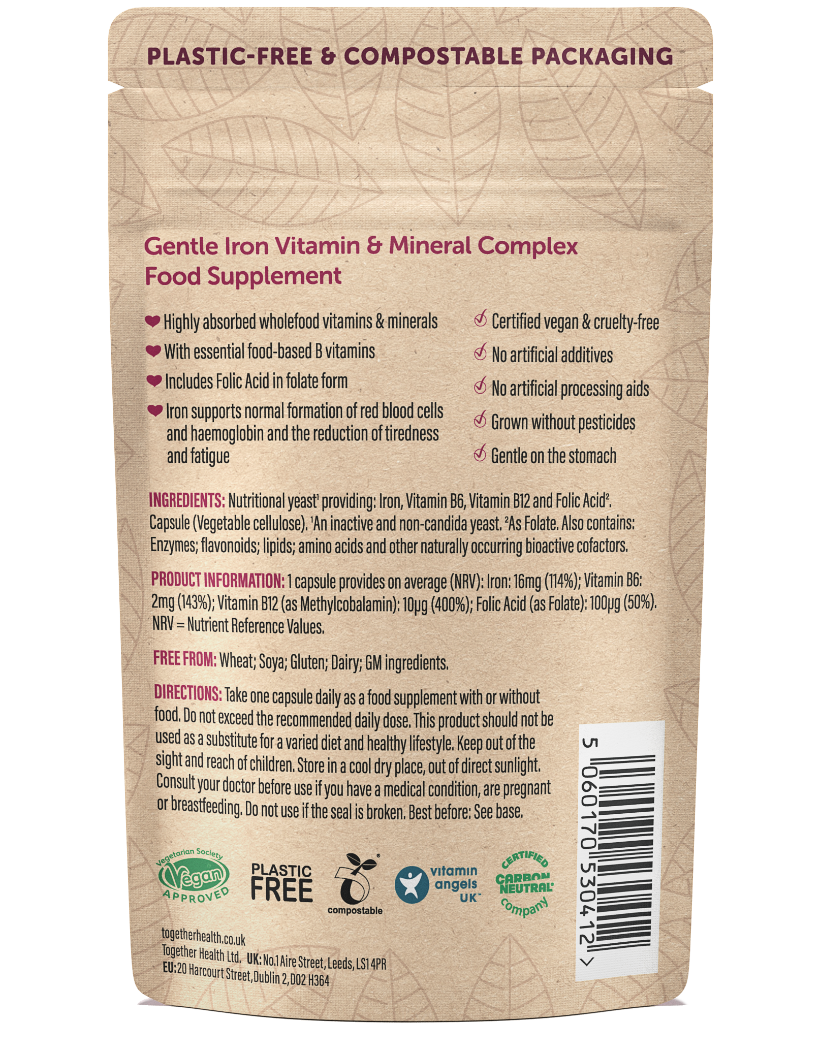 Our Gentle Iron complex also includes vitamins B6 & B12, which contribute to normal blood formation.