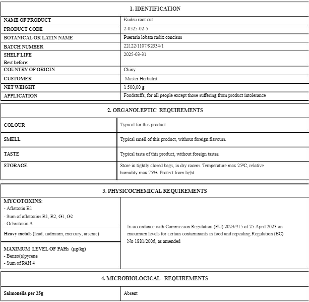 Typical Ingredients: 100% pure Botanical, absolutely nothing added, dried Kudzu Vine root.
