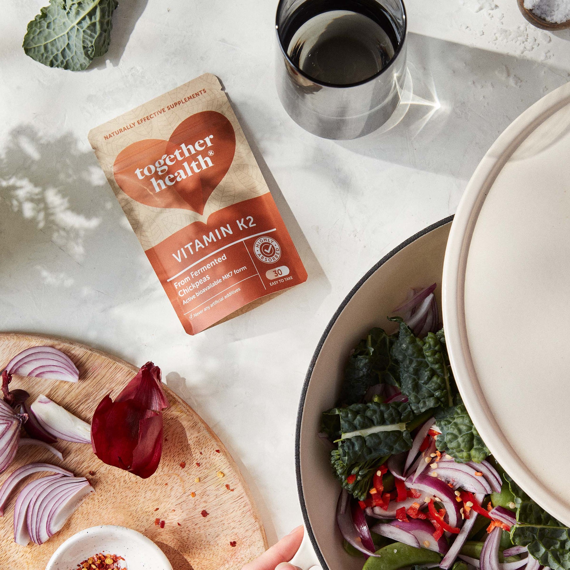 Our Vitamin K2 provides you with a highly biologically active form of vitamin K2 that is 10 times more efficiently absorbed than vitamin K1 from spinach.