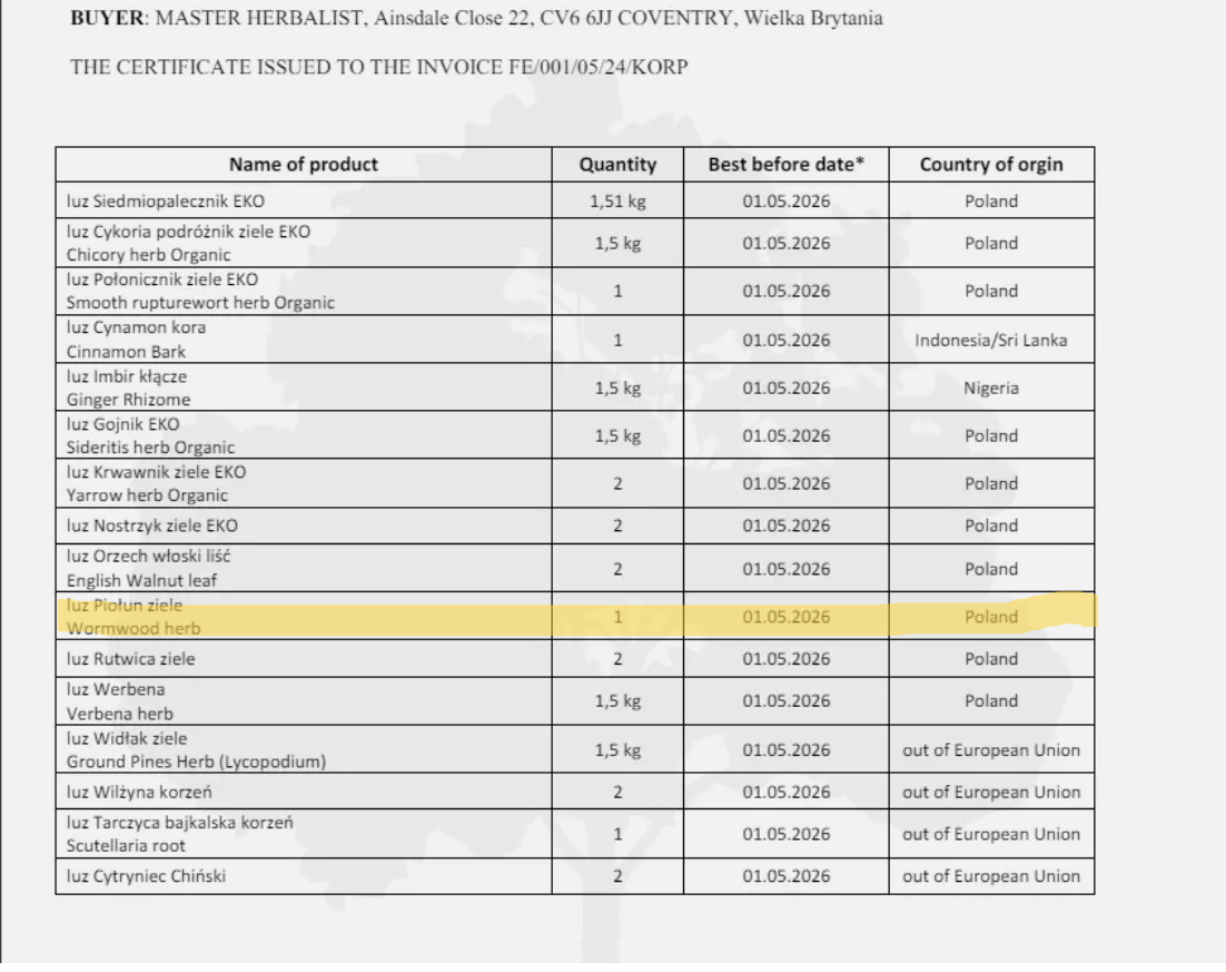 What make our Wormwood herb powdered tea special? Preparation! Using only finest wild grown or cultivated at Poland and Ukraine Wormwood herb, gathered right time, properly dried then passed trough laboratory checks to confirm highest quality and purity. Provided by wholesaler comply with GMP standards.